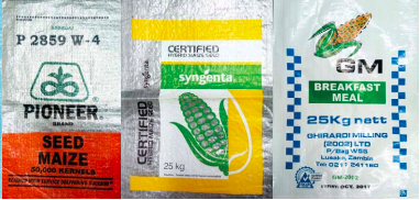 We can supply either plain or printed PP woven bags to a client’s specifications. We are capable of producing bags between 2 kg to 100 kg fabric plus open PP tubing 1.5 meters lay flat. PP Bags can be printed up to 4 colors but if the bag is laminated, we can print up to 8 colors on BOPP and laminate it up to 1.5m wide. Woven bags are available from 60gsm to 150gsm. Our bags can be used for grain, flour, maize meal, stock feed, seeds, sugar, meat, fertilizer, chemicals, sand, etc.